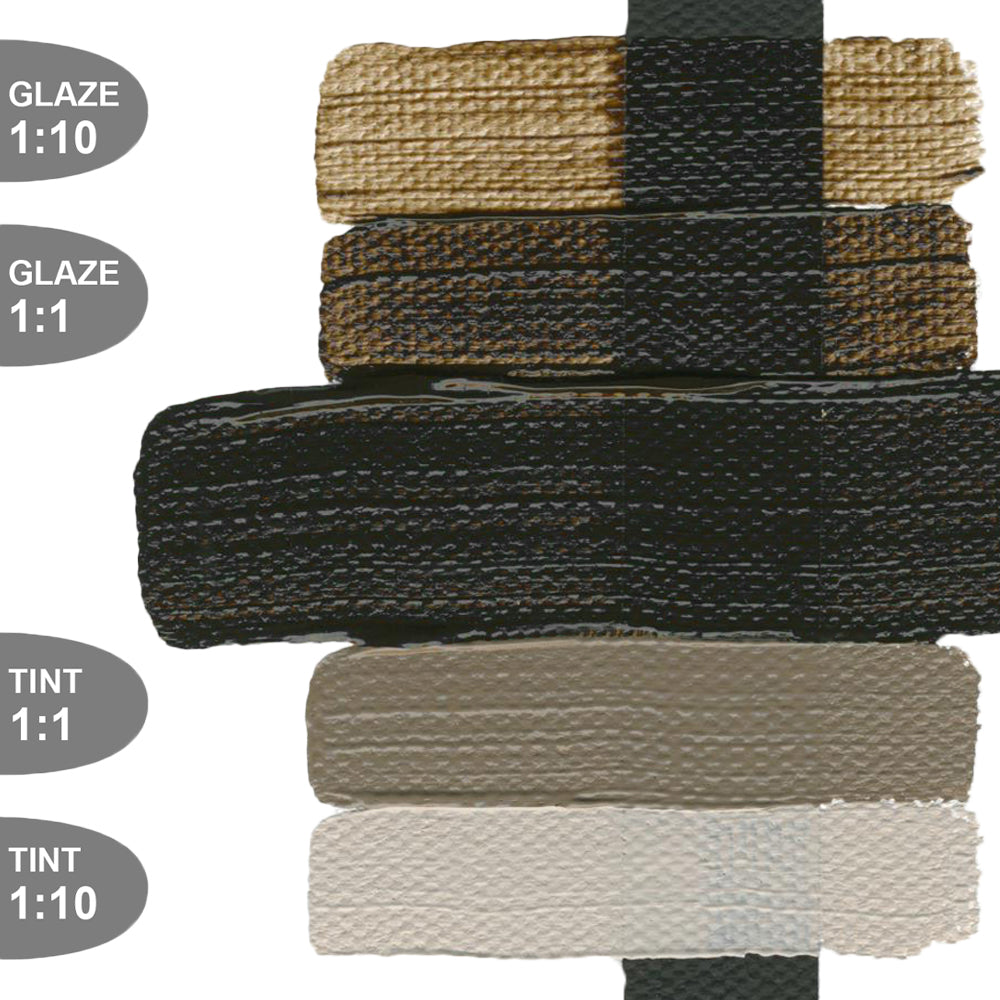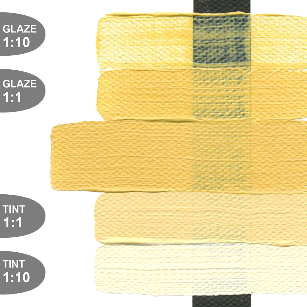 Each Heavy Body color formula reflects the qualities of its pigment. Colors that tolerate a higher pigment load dry to a more opaque, matte finish. Colors that are more reactive and do not allow as much pigment loading tend to have a glossier, more transparent, finish. Because Heavy Body colors contain no matting agents, the gloss of each color will be different.