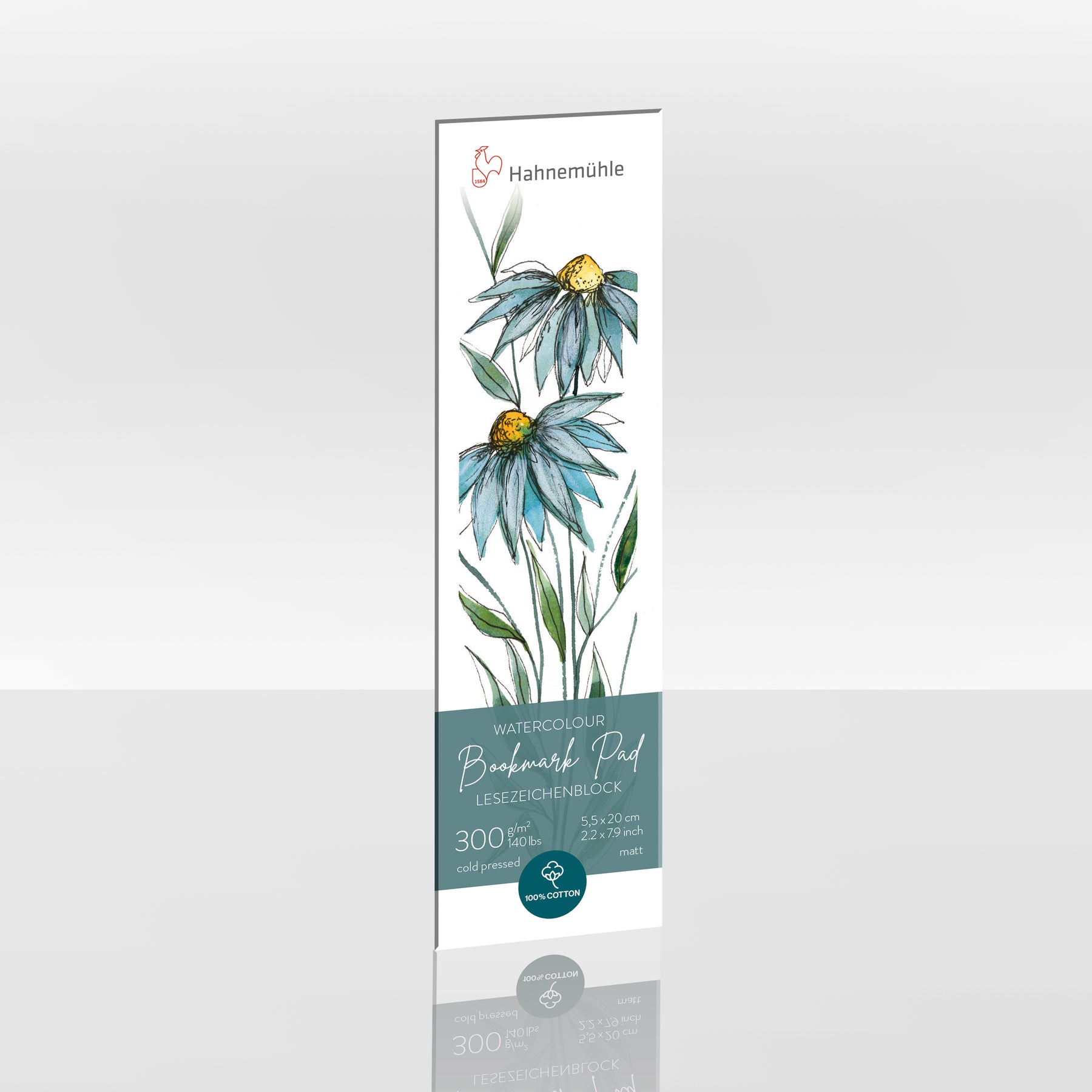 Create beautifully designed bookmarks and put a smile on your face or that of a loved one with a very personal gift. The Hahnemühle bookmark pad is for all creative people. With pre-cut bookmarks you can get started straight away, there is no need for tedious cutting from a standard sheet of watercolor paper. This heavyweight 100% cotton 300 gsm watercolor paper is highly absorbent and can hold several layers of watercolors. It is also a perfect basis for self-designed collages that can be created on bookmarks instead of a painted picture. Featuring the popular Hahnemühle “Expression Watercolor” paper which is surface sized and has a cold pressed structure. Perfect for watercolur, gouache, acrylic, or fine liners.