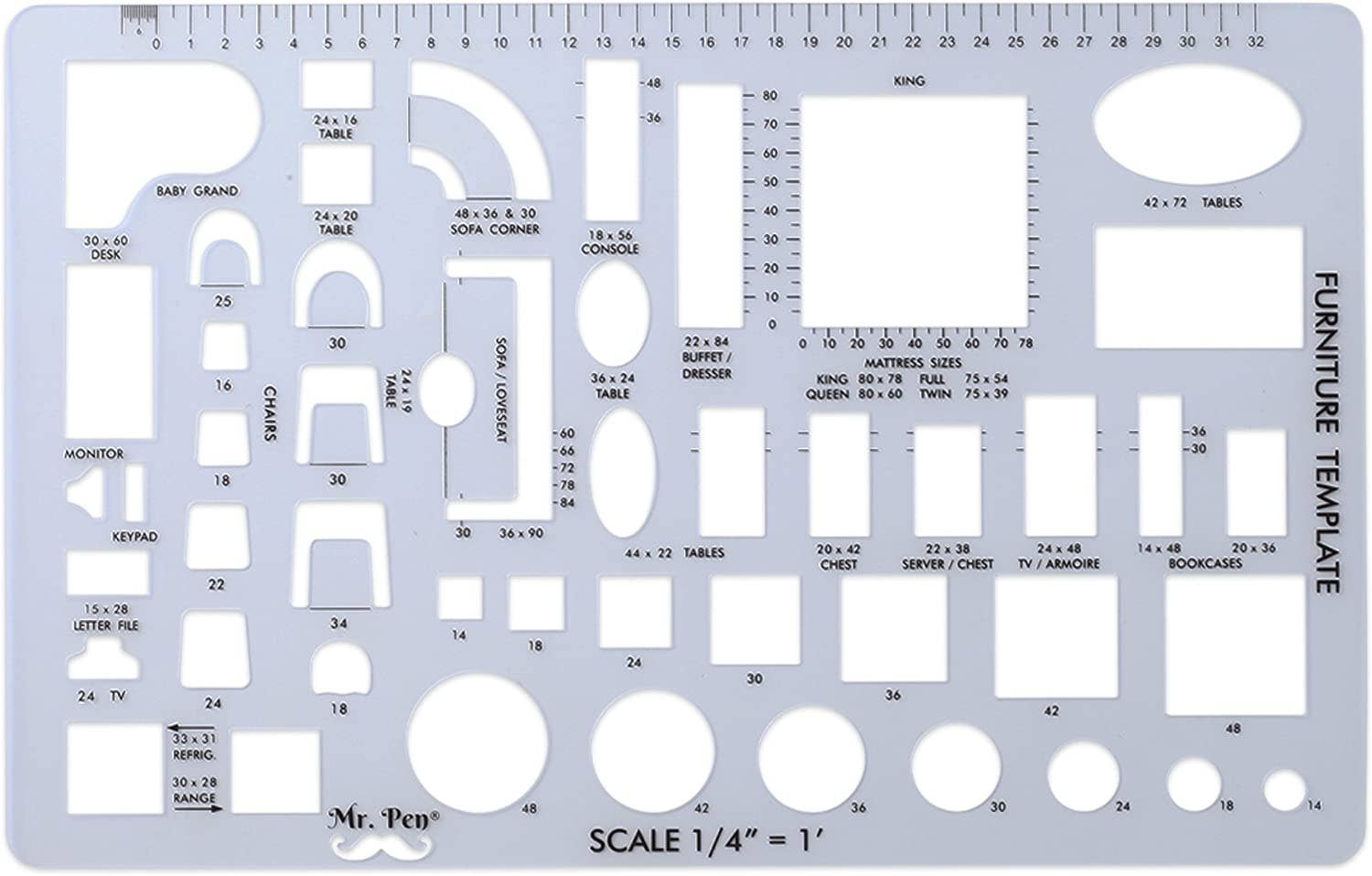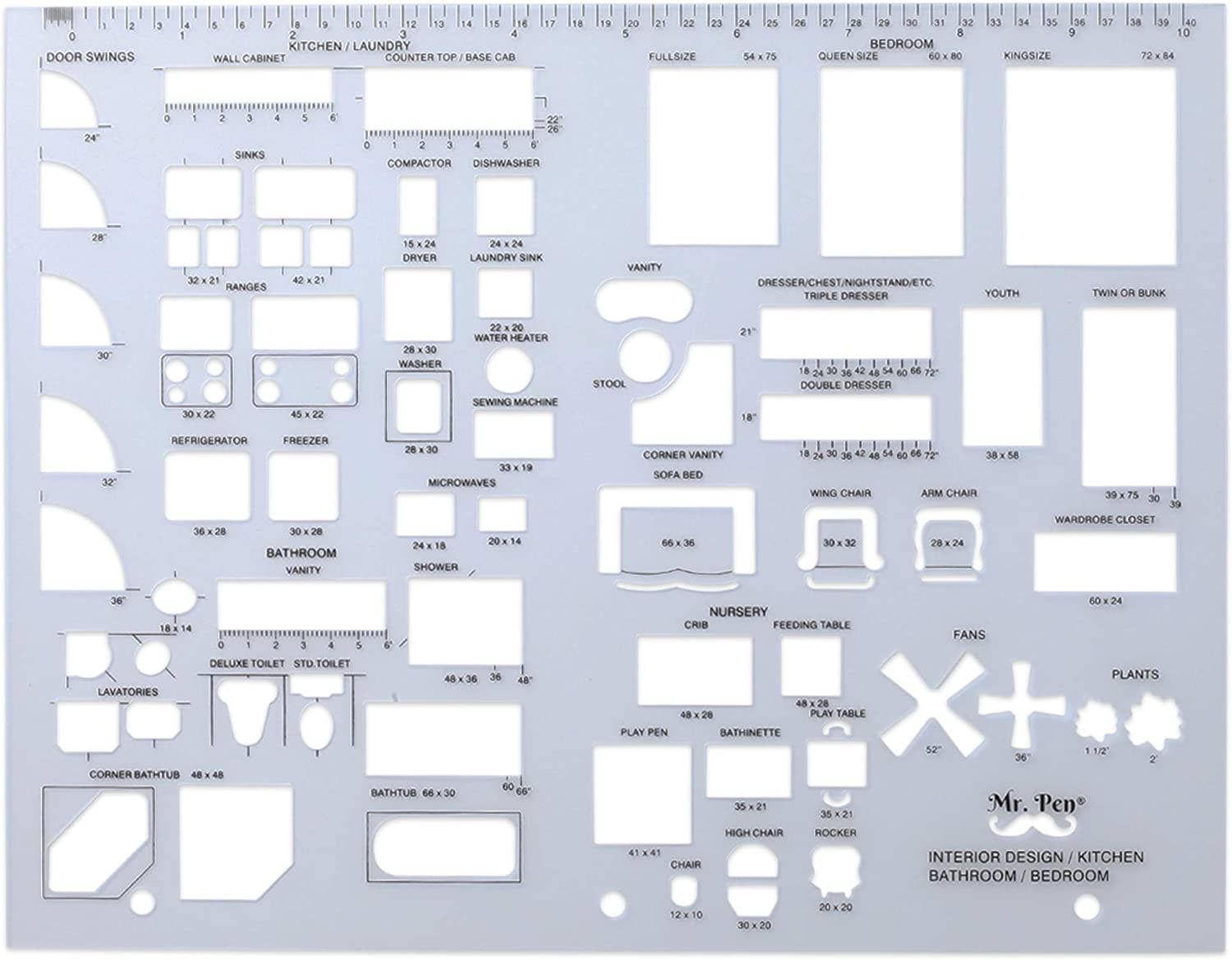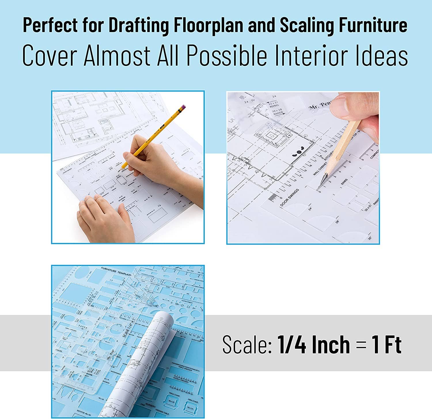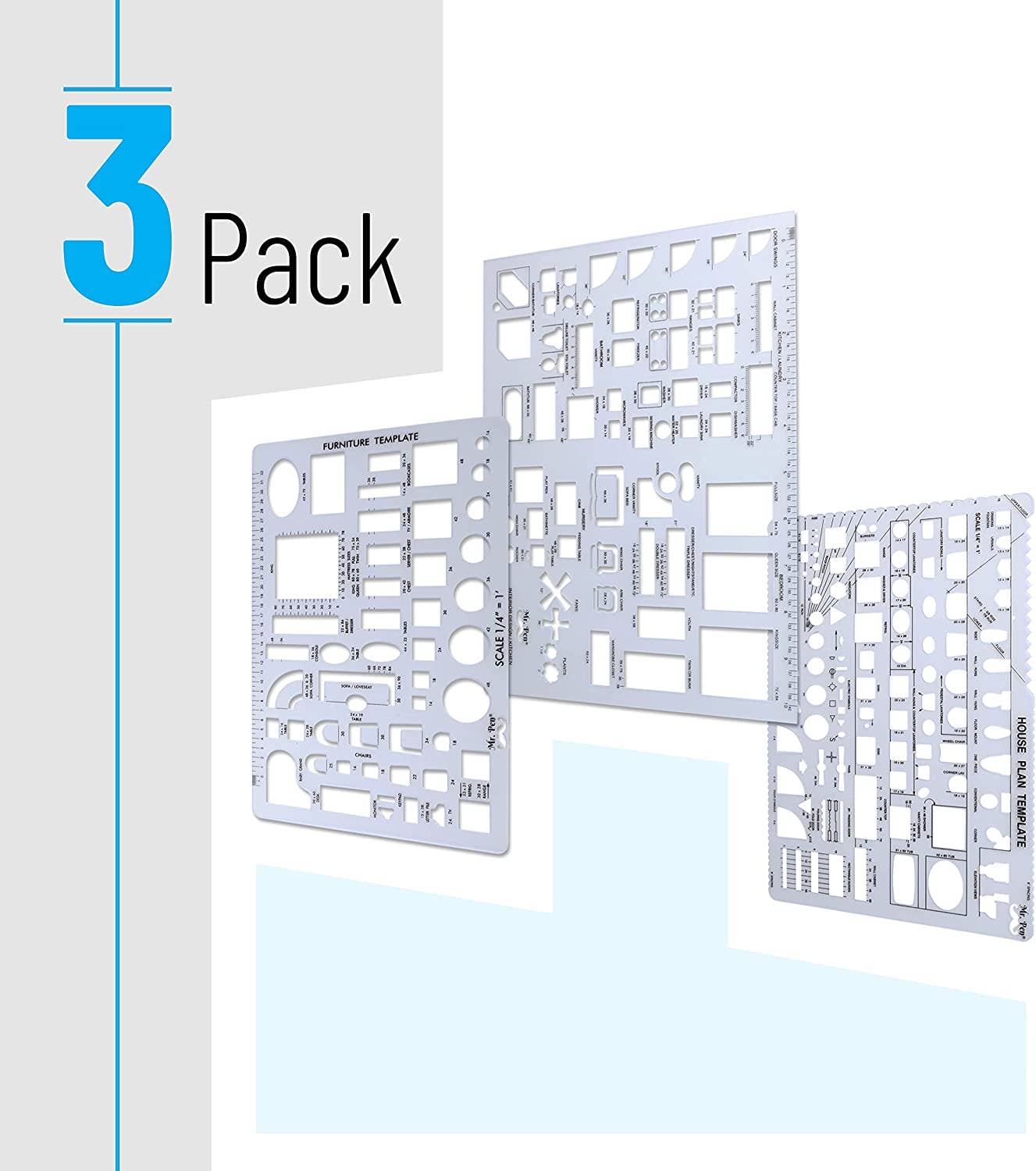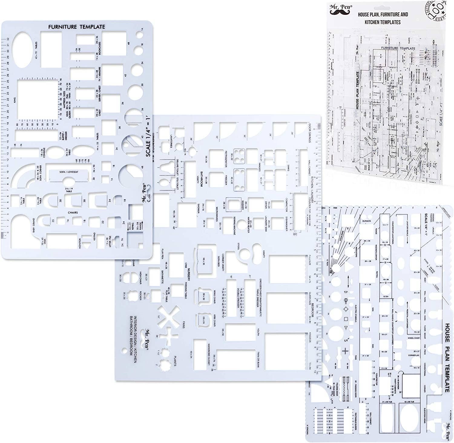 • 3 Pc Architect Drawing And Interior Design Template Set (Scale: 1/4 Inch = 1 Ft): House Plan Template, Furniture Template, And Kitchen, Bed & Bath Template