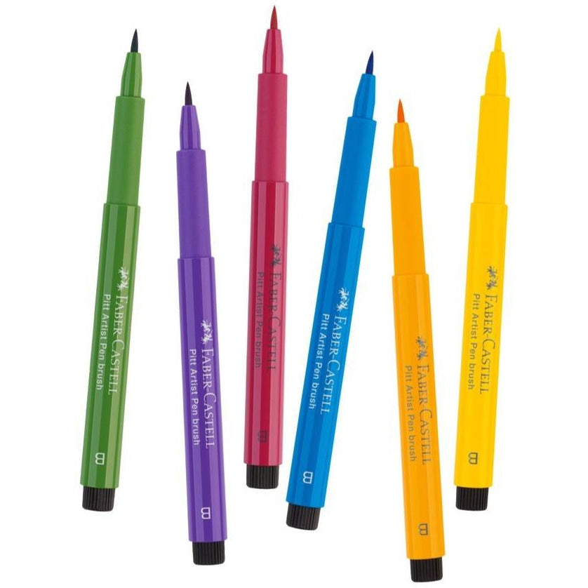 Pitt Artist Pens® with a soft brush tip can produce a line of 0.5 to 5mm. They offer odorless, permanent and waterproof inks that will not bleed through paper. The pigmented India inks are lightfast, acid-free and pH Neutral. The pens are used daily by artists worldwide for illustrations, fashion design, life drawings, portraits, sequential art and canvas paintings. They work beautifully on all types of papers and canvas, permanent on porous surfaces. Ideal for free form drawings, sketches, creating bold details and studies in ink. Store horizontally when not in use.