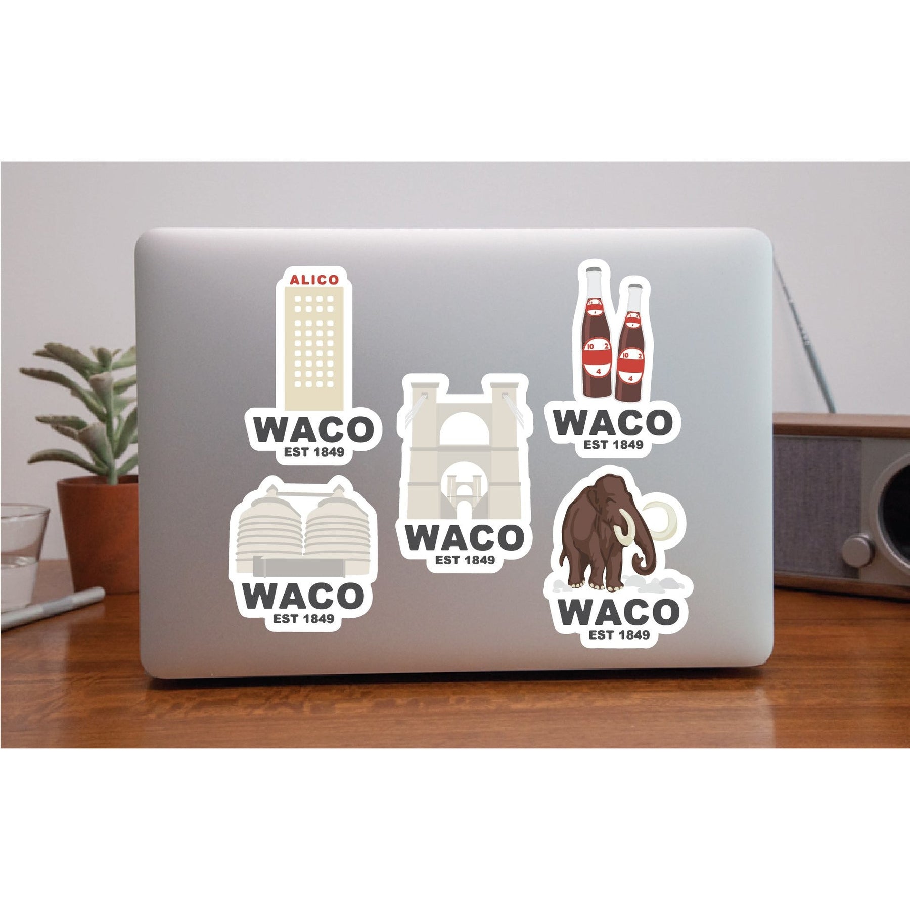 Each sticker features original artwork by Jessica Williams, Waco native and owner of Coreshoppers in Waco, TX.