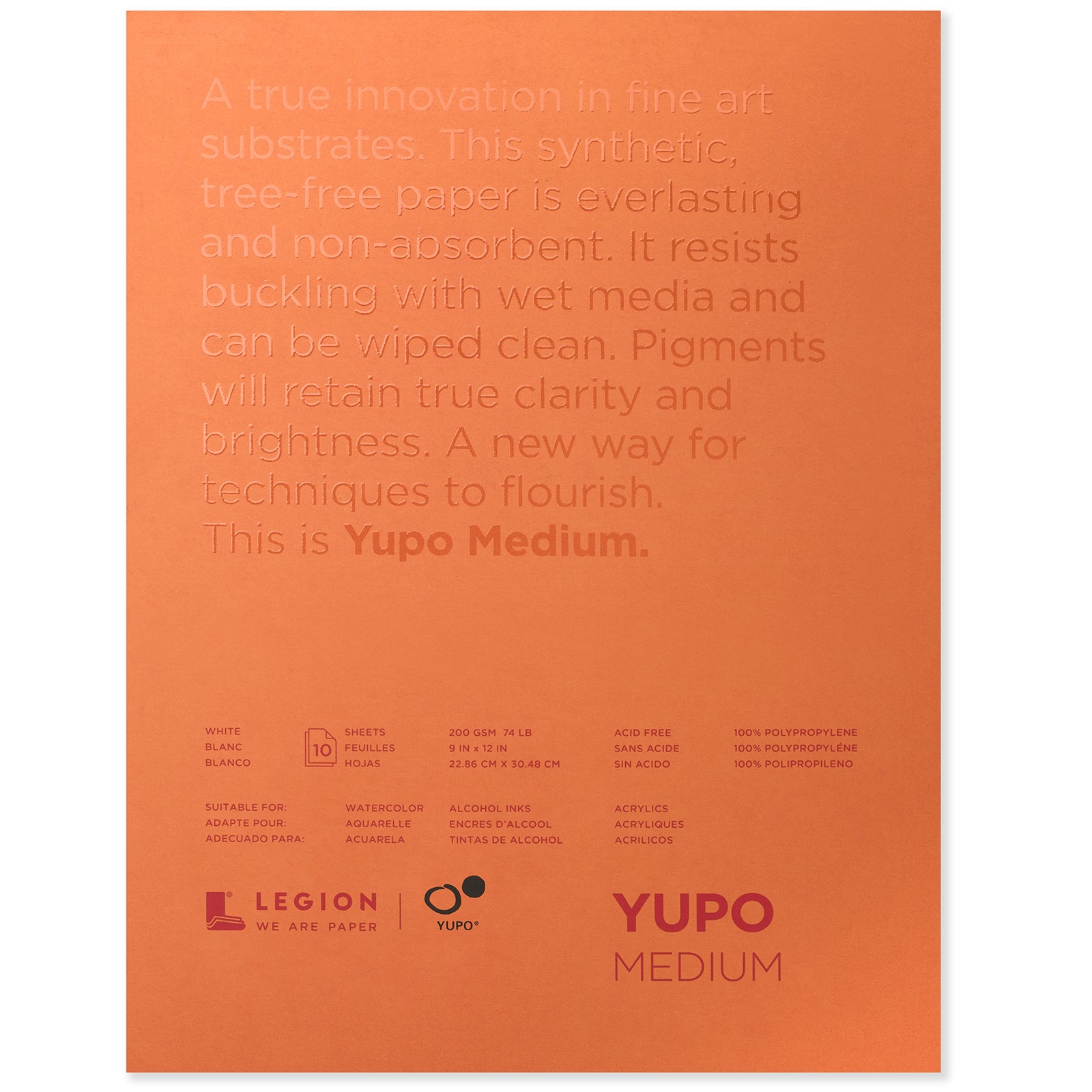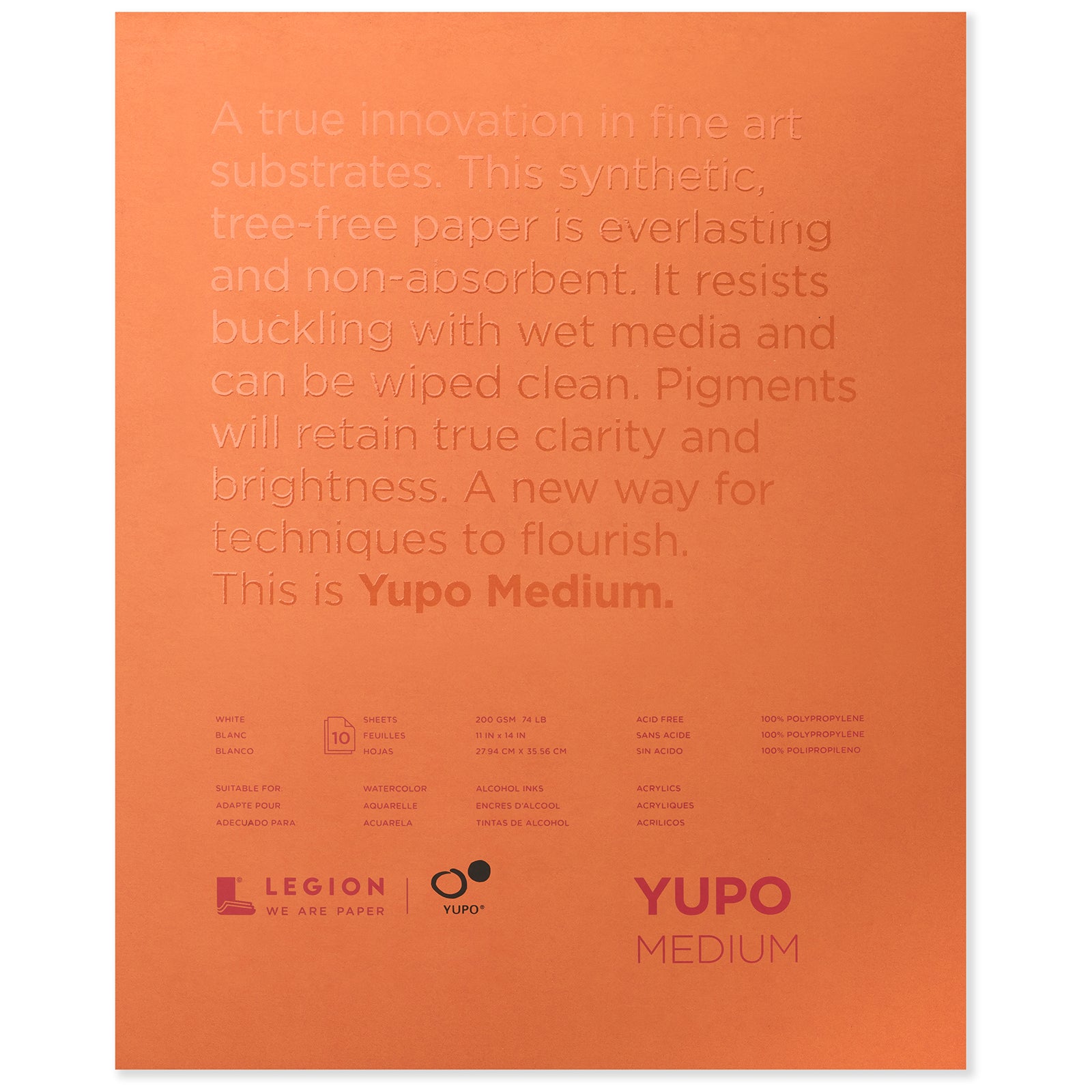 A synthetic (polypropylene) substrate is born with a non-porous surface that repels water. YUPO® gives visual artists an amazingly beautiful canvas to work with. Its bright white, smooth finish gives artists the flexibility to work in several different mediums to achieve unique and creative results.