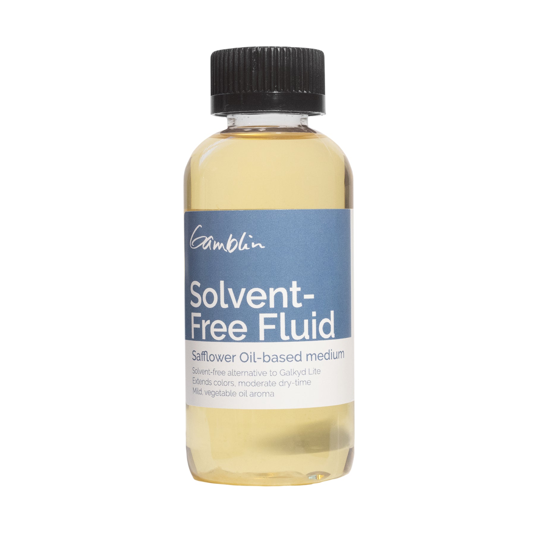 This fluid, solvent-free painting medium gives oil colors more flow and transparency. It has a moderately fast drying rate and increases gloss. Made from safflower oil and alkyd resin, it is non-toxic and contains no Gamsol or petroleum distillates.
