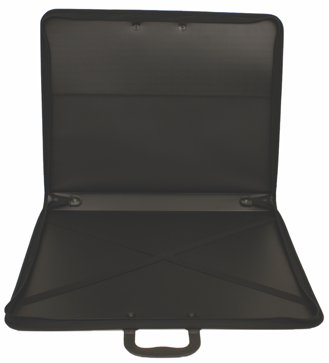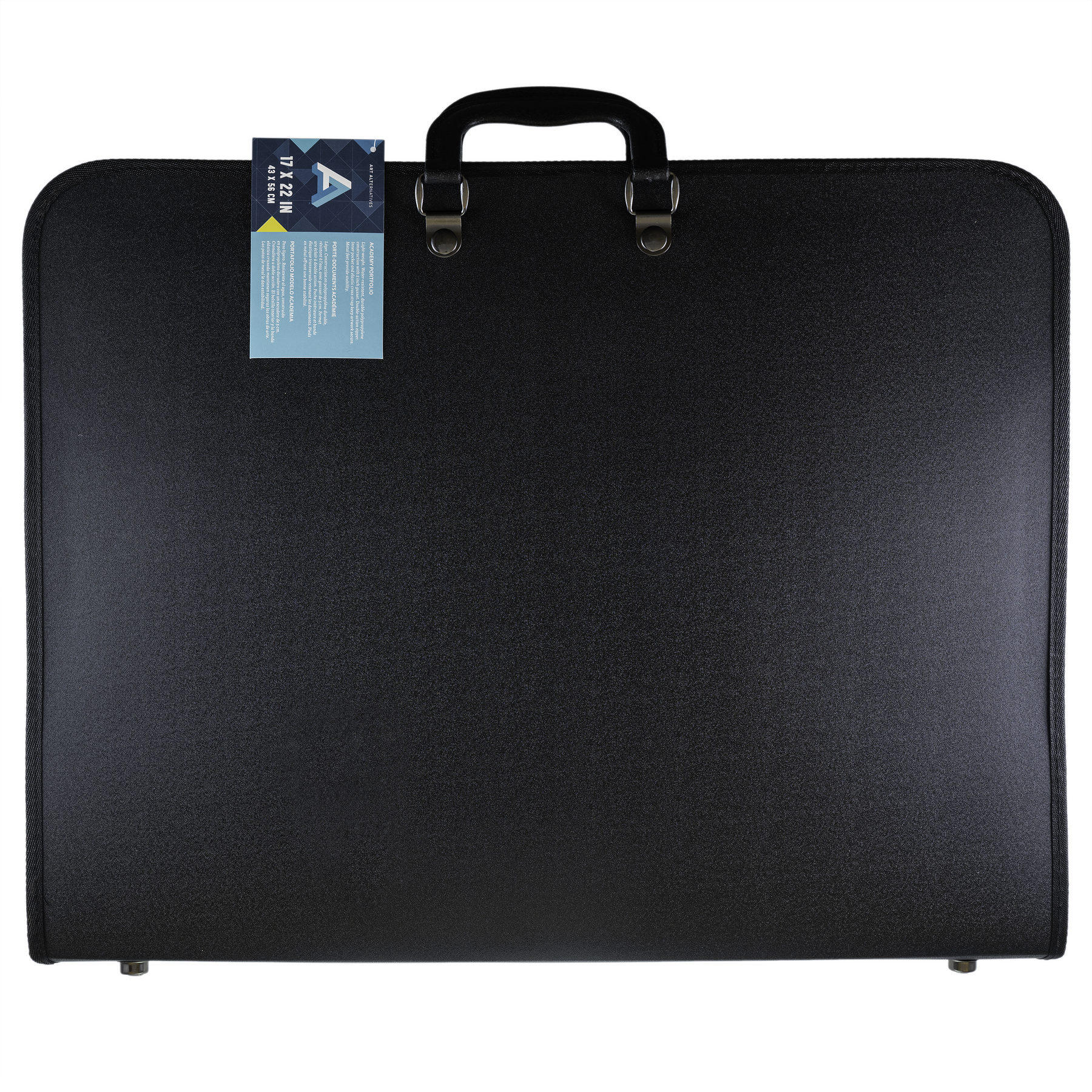 Light-weight and water-resistant, these portfolios are constructed of durable polypropylene with 2" gussets. They feature a dual-action zipper, an inner pocket and an elastic cross strap that keeps artwork secure. Plastic feet provide stability. The 32" x 42" portfolio features a 2.5" gusset and a side handle for extra support.