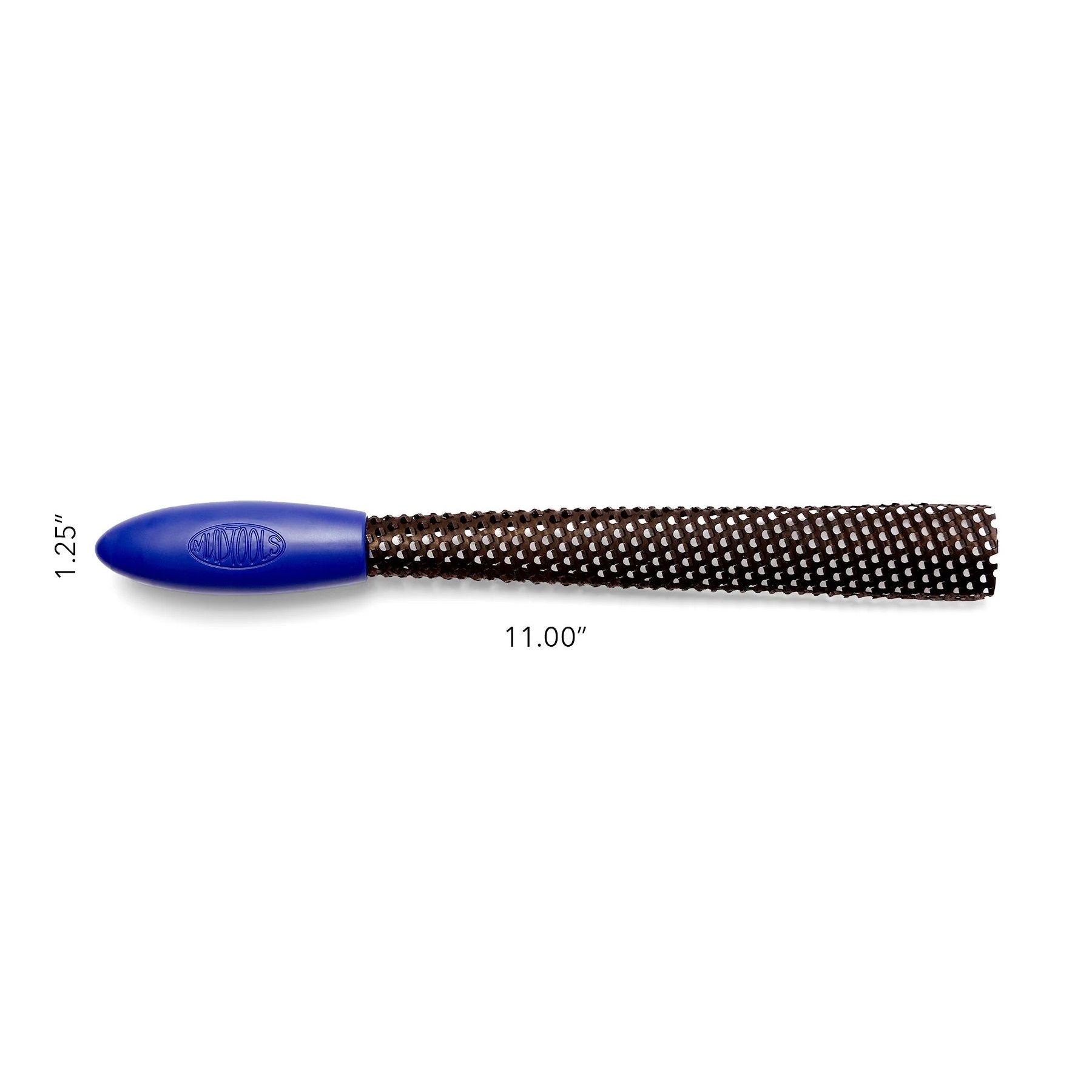 For years tools like this were available at hardware stores. This type of rasp was originally designed to be used on wood, but then potters, sculptors and auto-body repairmen discovered how well the blade worked with other materials, like clay and auto-body filler. The problem with these rasps was the handle design - the handle would trap clay and get clogged. Michael designed a new open-blade shape as well as a comfortable ergonomic grip. This shredder functions well, and doesn't frustrate the user by trapping waste clay in the tool. An added benefit is the tool mark, which leaves a handsome textured surface in the clay.