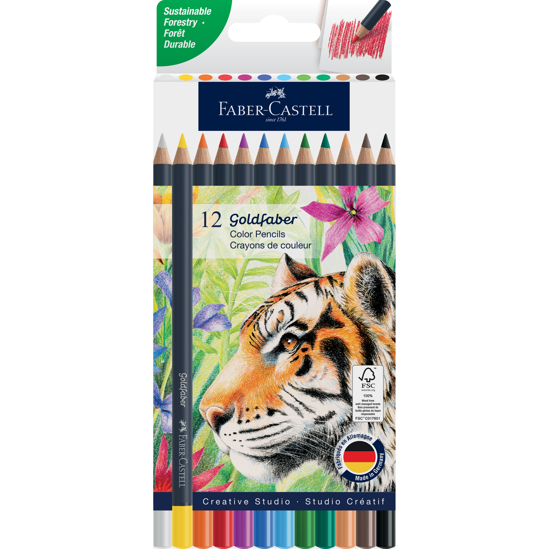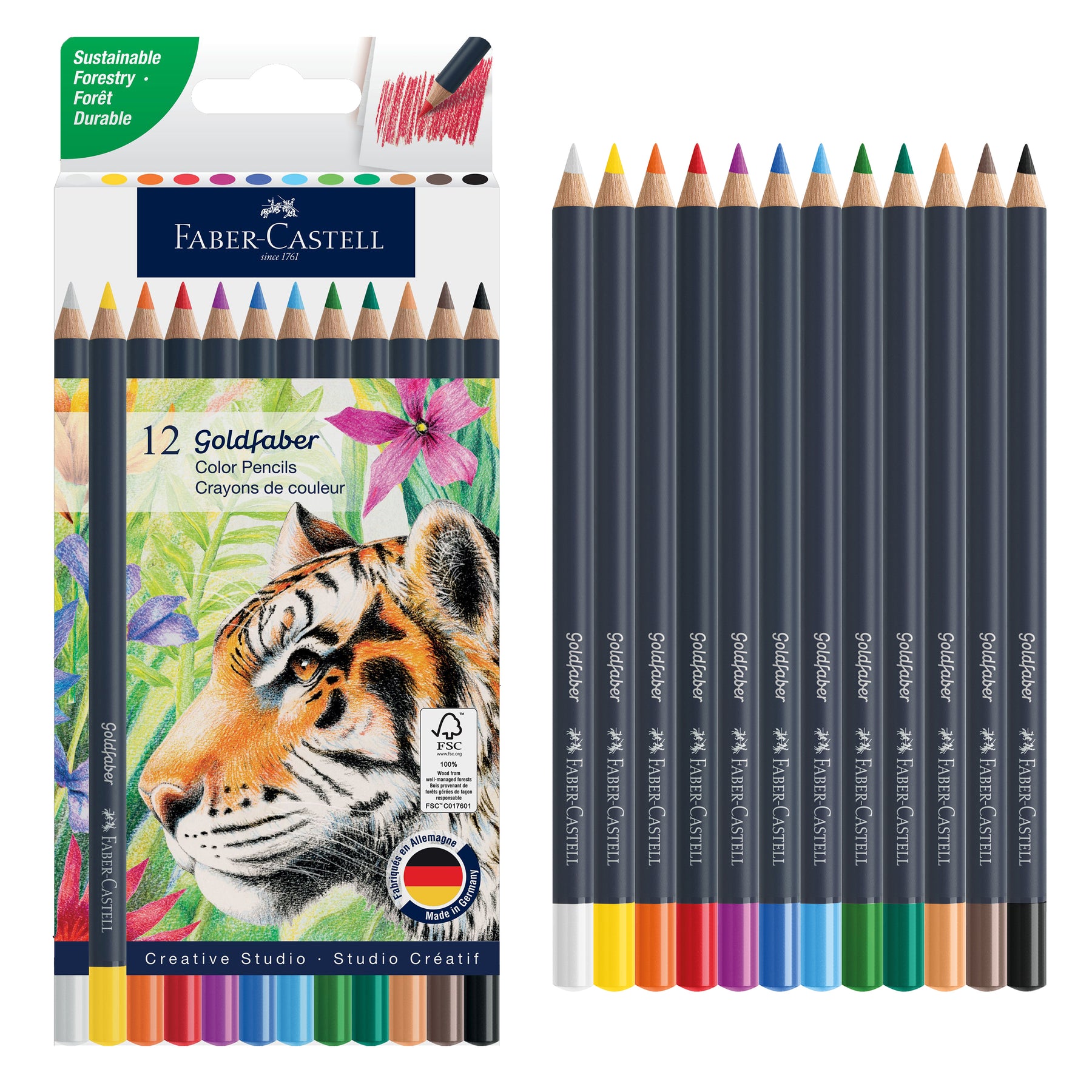 Discover smooth laydown and rich color with this 12-count set of Goldfaber Color Pencils. With a curated mix of earthy neutrals and bold primaries, each pencil offers consistent performance and vibrant pigmentation. Designed for all skill levels, these professional color pencils glide smoothly across the page for soft shading, seamless gradients, and crisp detail. Whether you are sketching loose florals or refining intricate illustrations, these coloring pencils deliver rich pigment and control. An essential addition to any coloring supplies or creative toolkit.