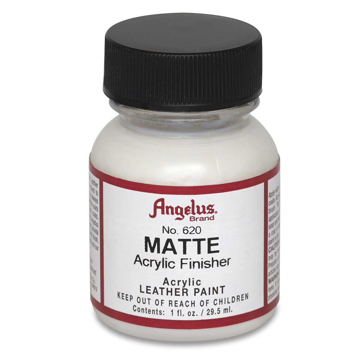 Apply Acrylic Finisher to help protect the paint from minor scratches or scrapes. Available in a variety of finishes from matte to high gloss in both 1 oz. and 4 oz. bottles. Excellent for both hand-crafted work and high speed production. Just apply with a sponge, rag, wool, spray gun or brush and let dry. No buffing needed. This water-based product cleans up with soap and water. It is water-resistant and will not rub off, crack, peel or streak. Great when used over different finishes where a uniform finish is desired. Flexible enough for belts, shoes, handbags, saddlery, tack and upholstery.