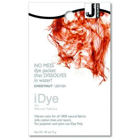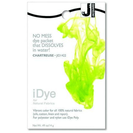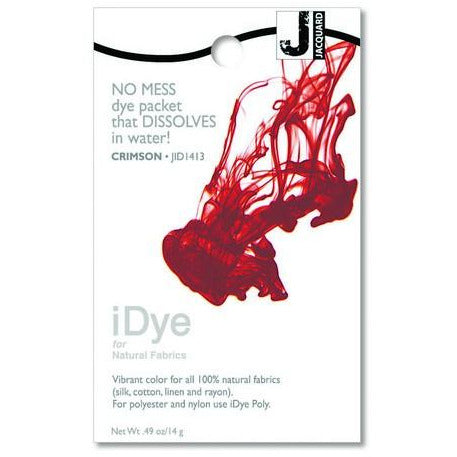 Dyeing has never been easier than with iDye from Jacquard! iDye comes in a dissolvable packet, so there are never any messy powders to handle: simply dissolve the packet in the dye bath or drop it in the washer, then add the fabric. iDye is a hot water dye that produces brilliant colors on any natural fabric and may be used on the stove-top or in the washing machine.