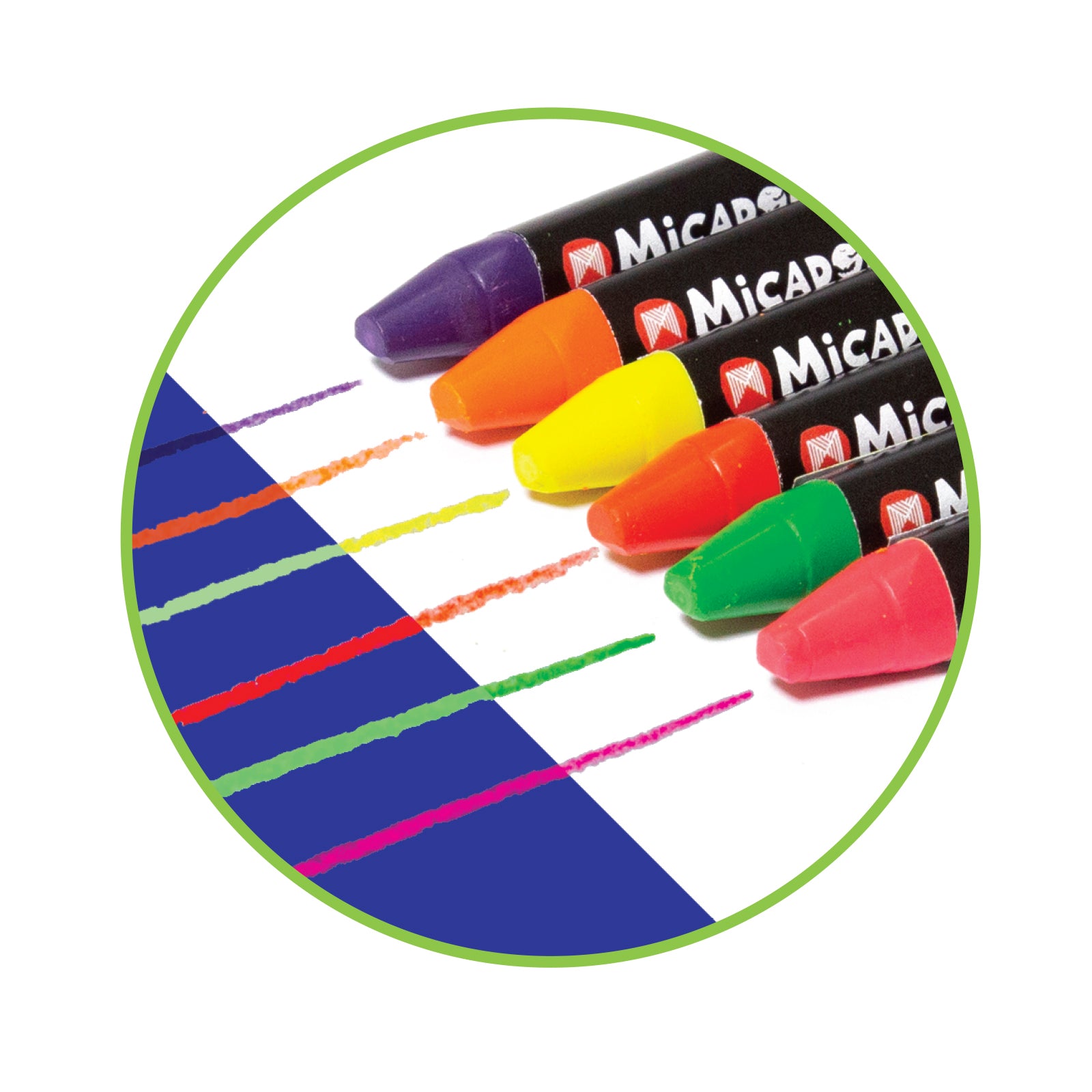 These Neon Crayons are made from beeswax and have a triangle shape for easy grip. The neon colors are extra-rich and super smooth. This set includes one each of purple, orange, yellow, red, green and pink neon crayons. Recommended for ages 3 and up.