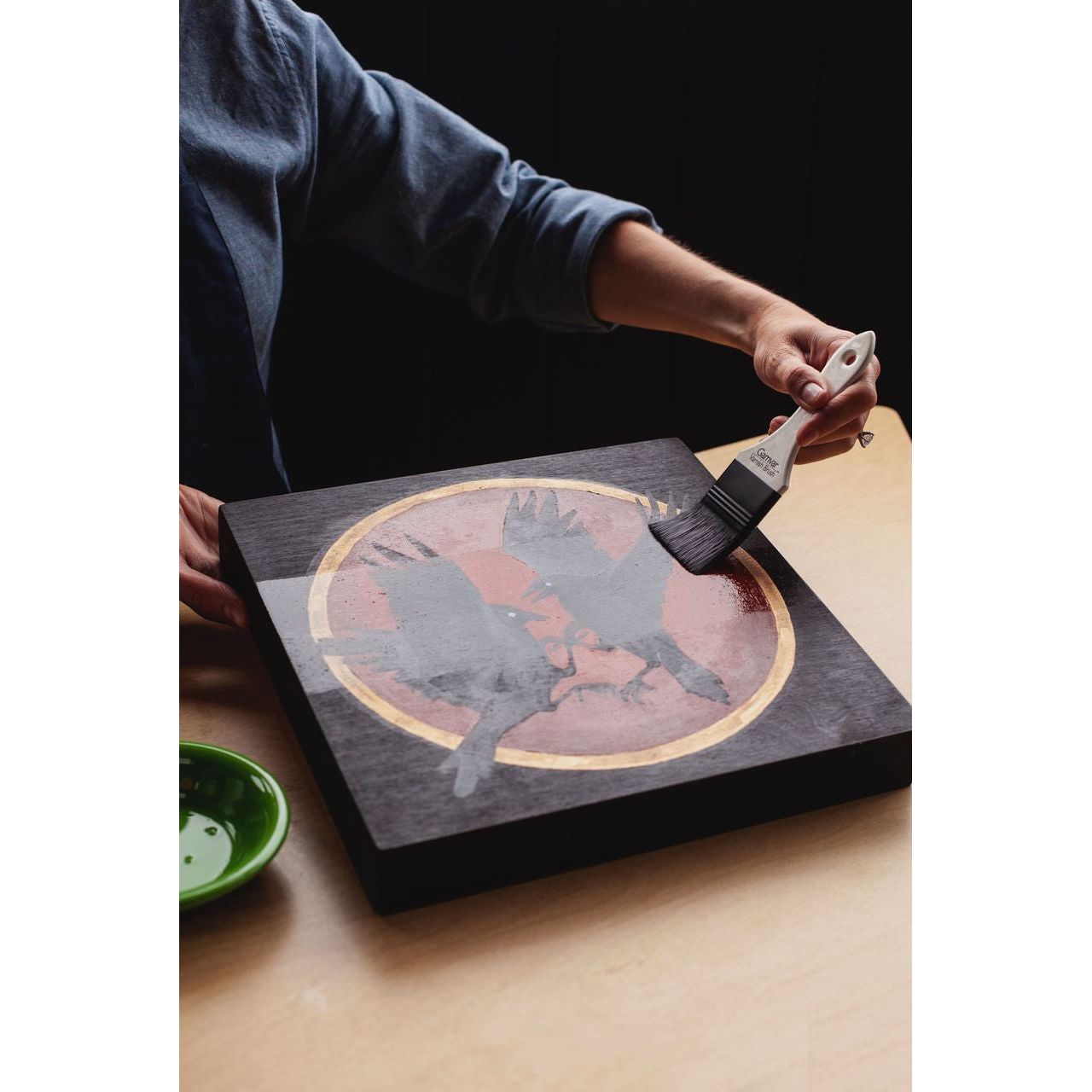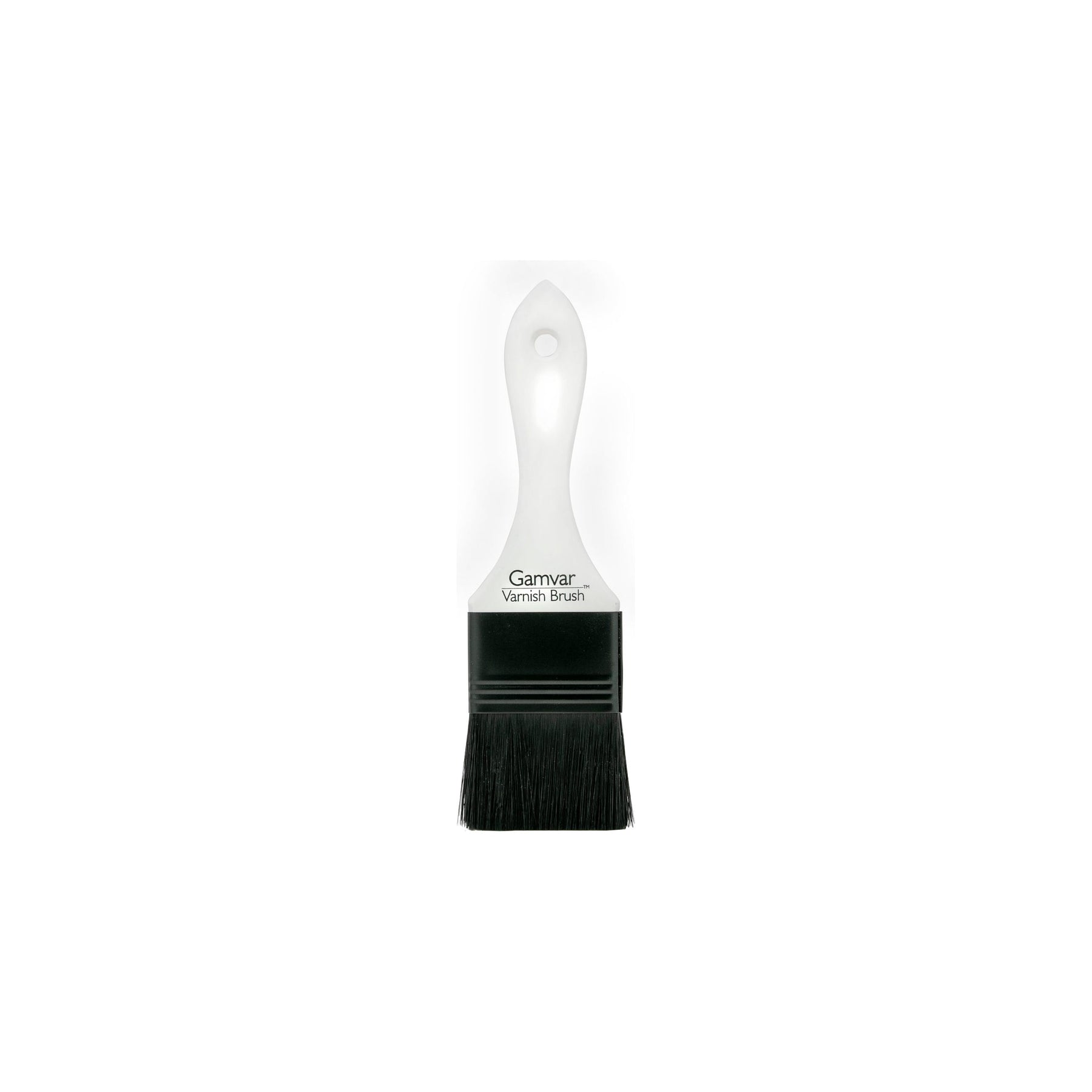 This brush has the correct thickness and stiffness — soft enough to contour to the texture of your work, yet stiff enough to evenly and thinly varnish your painting. Works with Gamvar Gloss, Satin, and Matte on oil and acrylic paintings.
